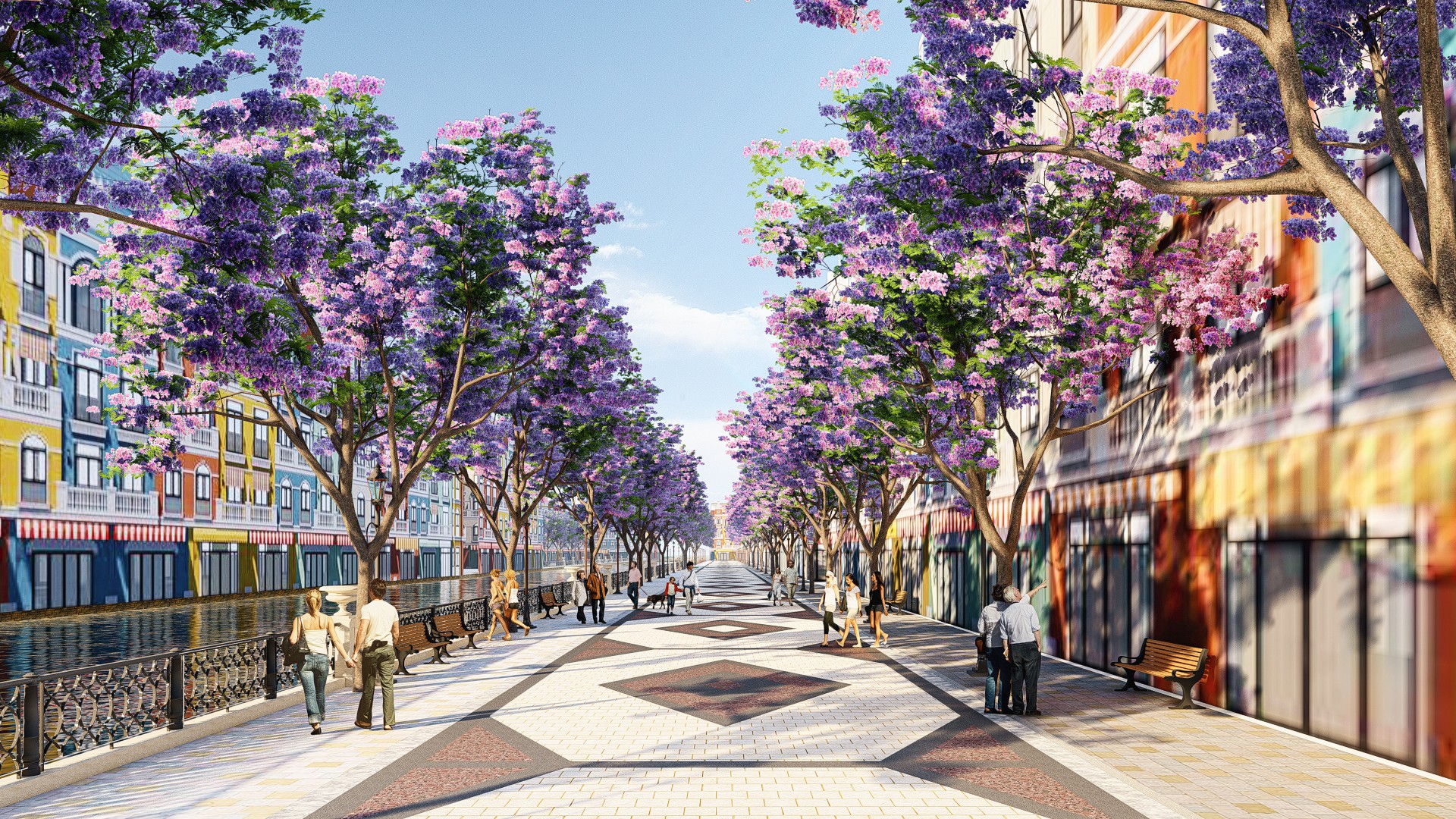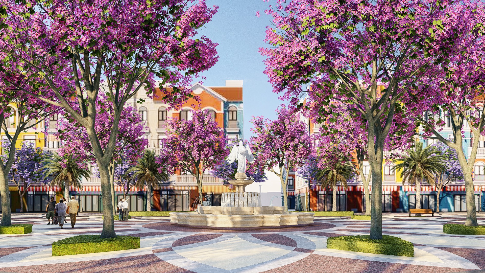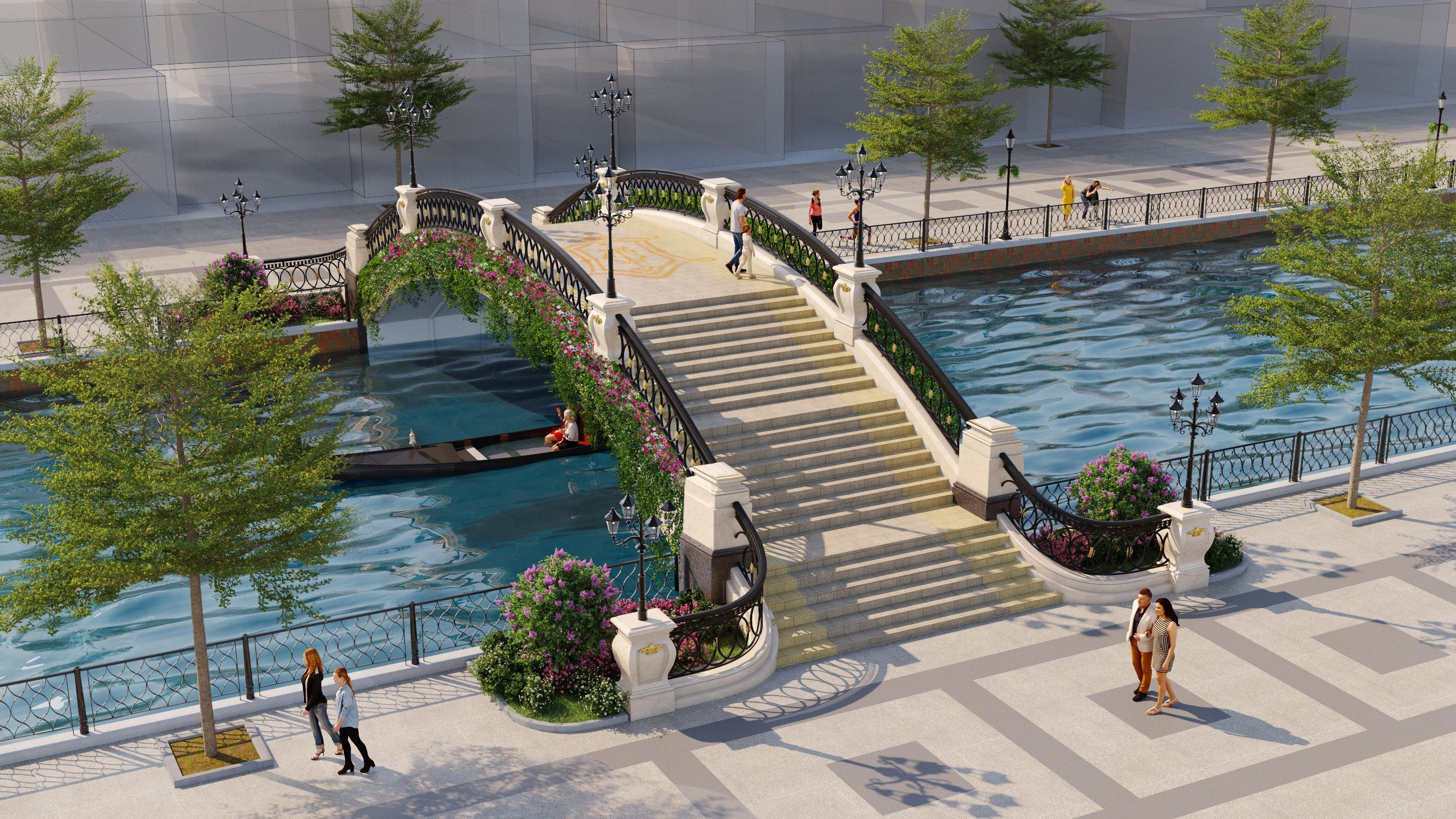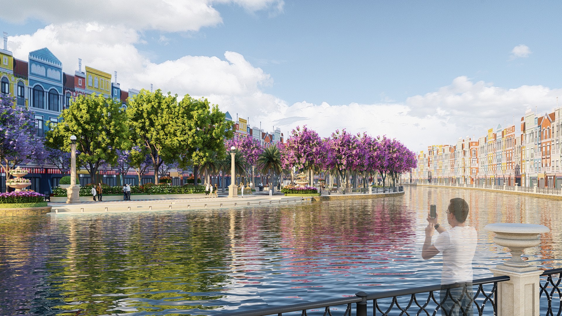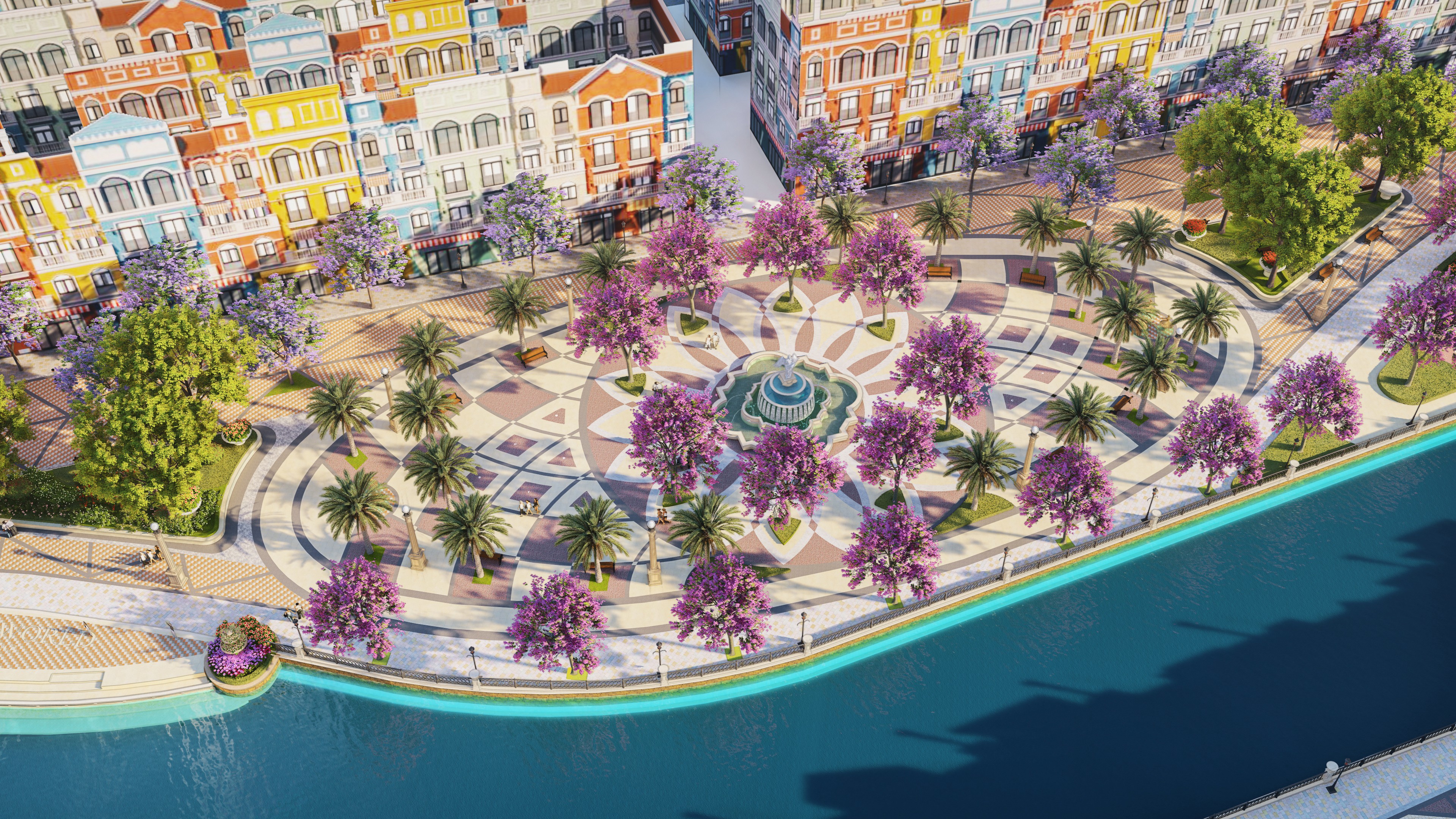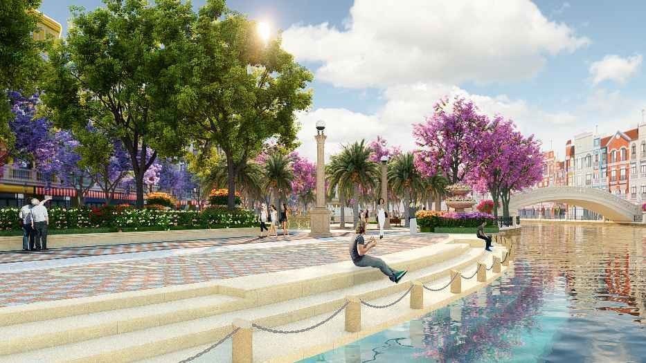 ✤ Cảnh quan tiện ích điểm nhấn gồm quảng trường, tháp đồng hồ, cầu biểu tượng, đường dạo ven sông, các tượng nghệ thuật mang cảm hứng Venice