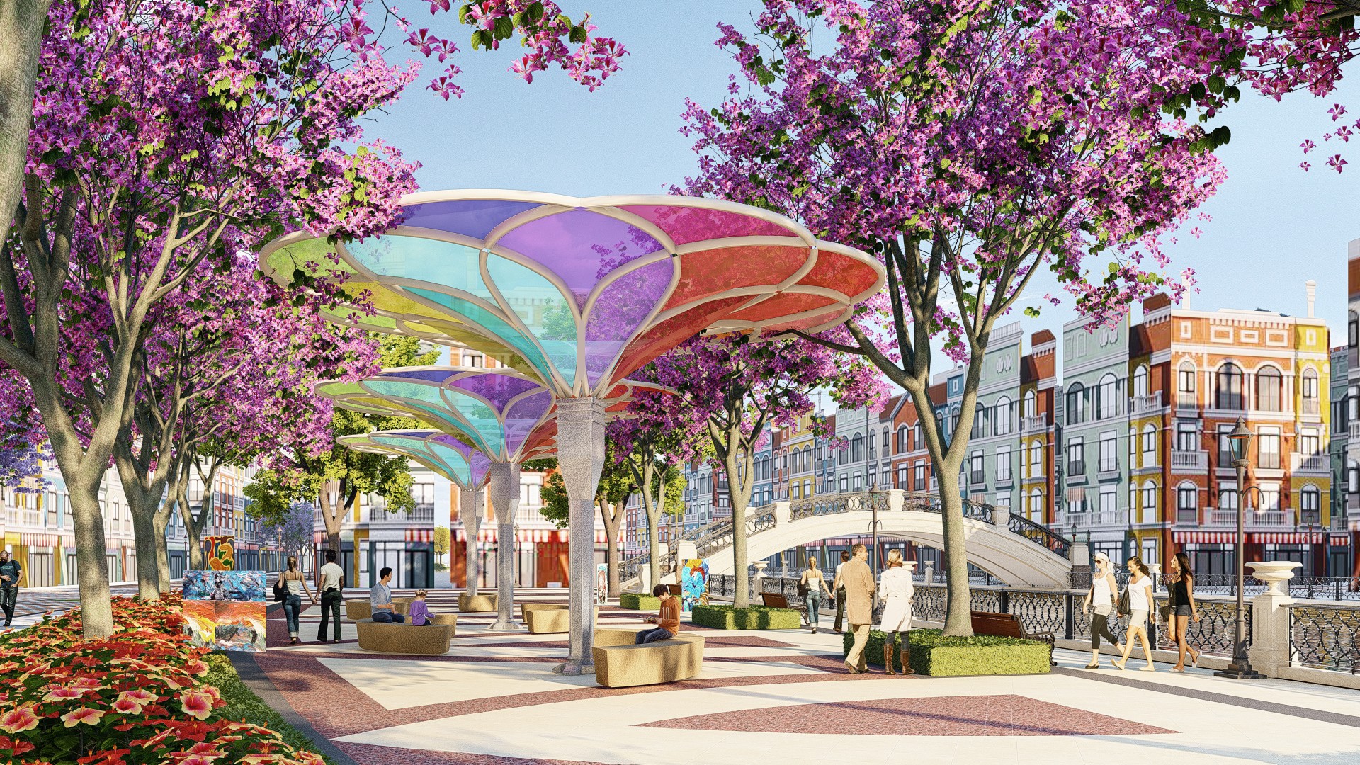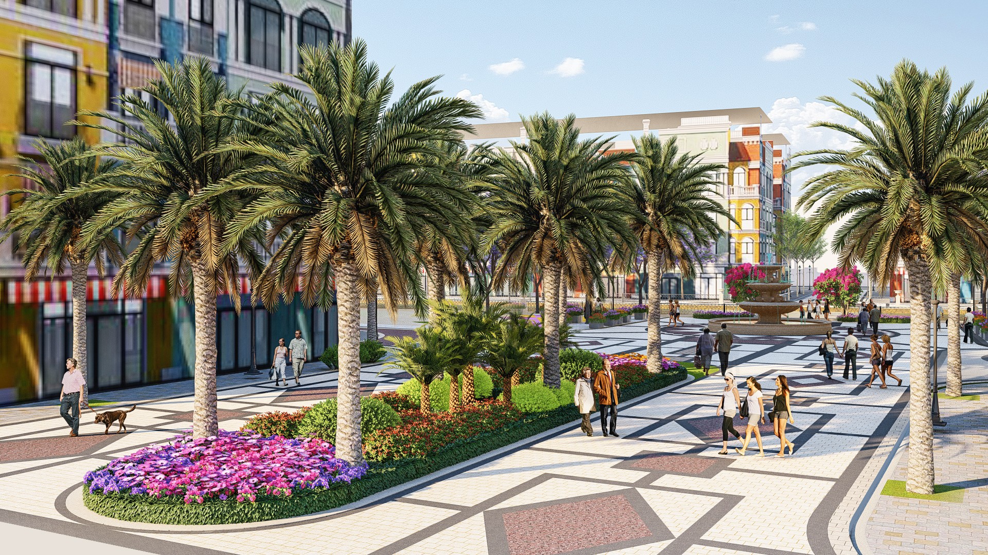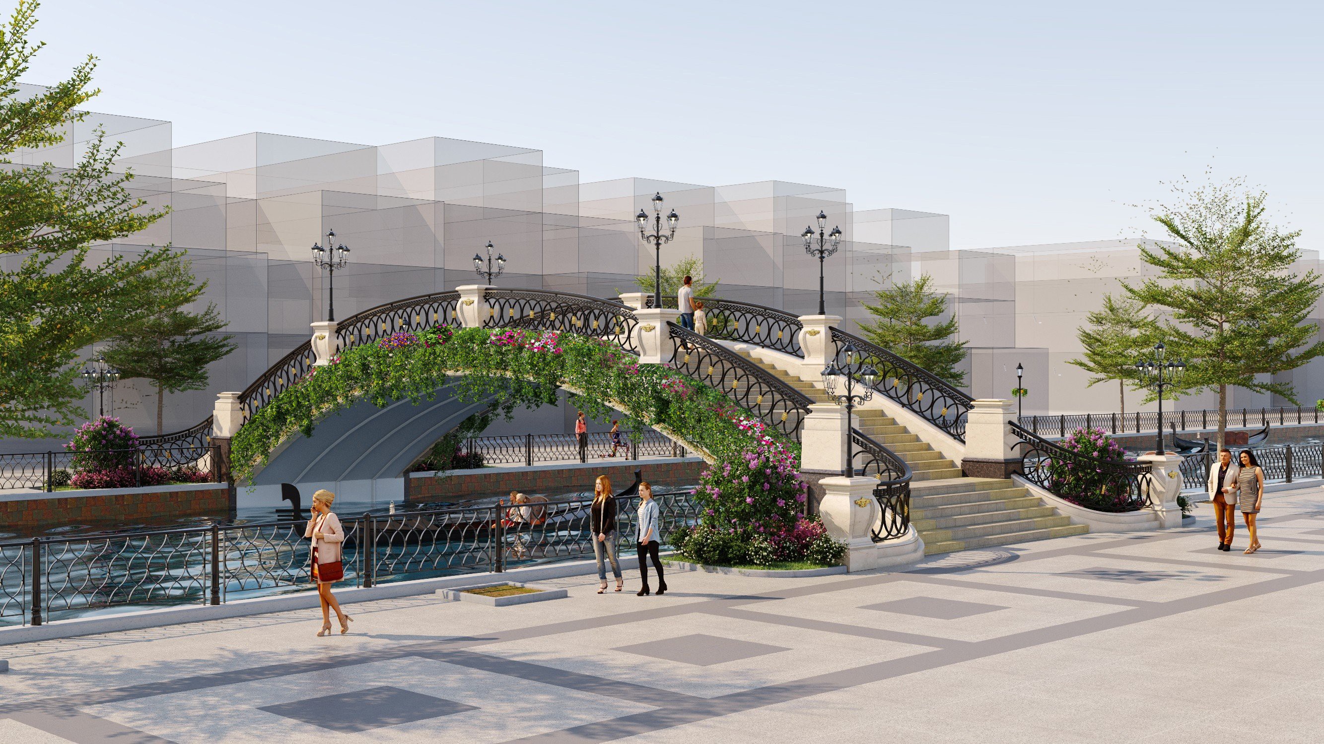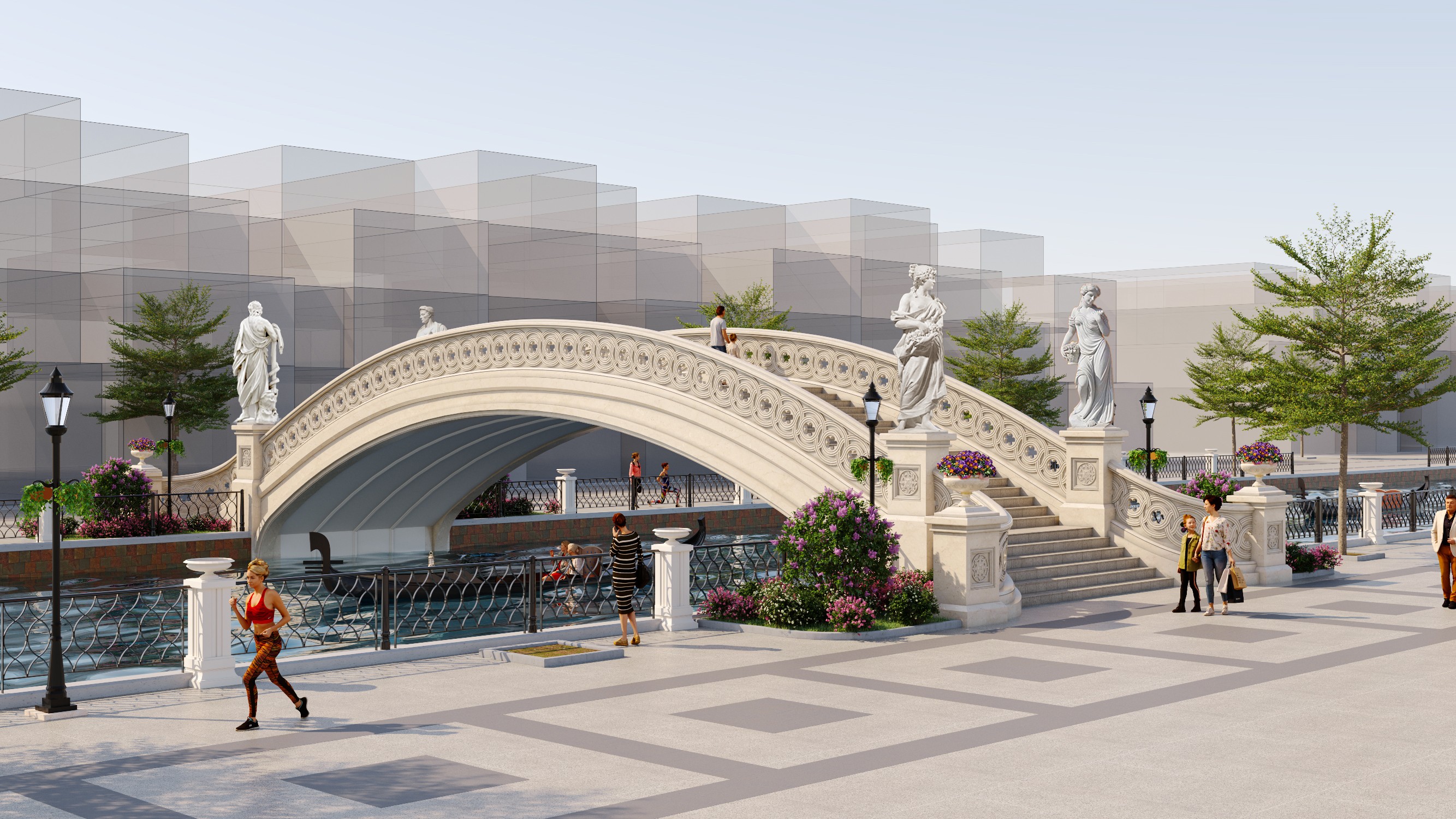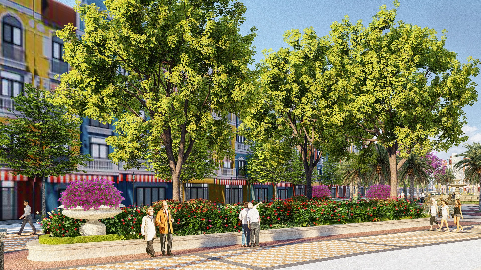 ✤ Cảnh quan tiện ích điểm nhấn gồm quảng trường, tháp đồng hồ, cầu biểu tượng, đường dạo ven sông, các tượng nghệ thuật mang cảm hứng Venice