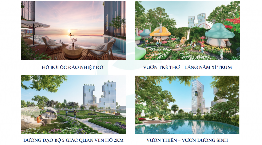 Khu resort Vịnh Ngọc bao gồm resort ven hồ, resort công viên và resort thương mại.