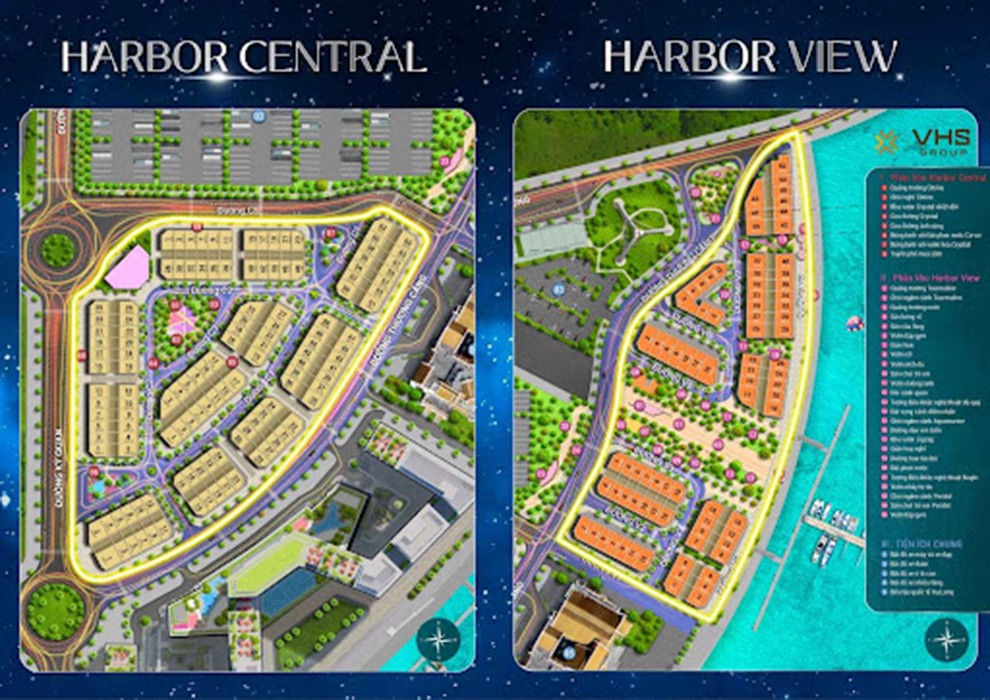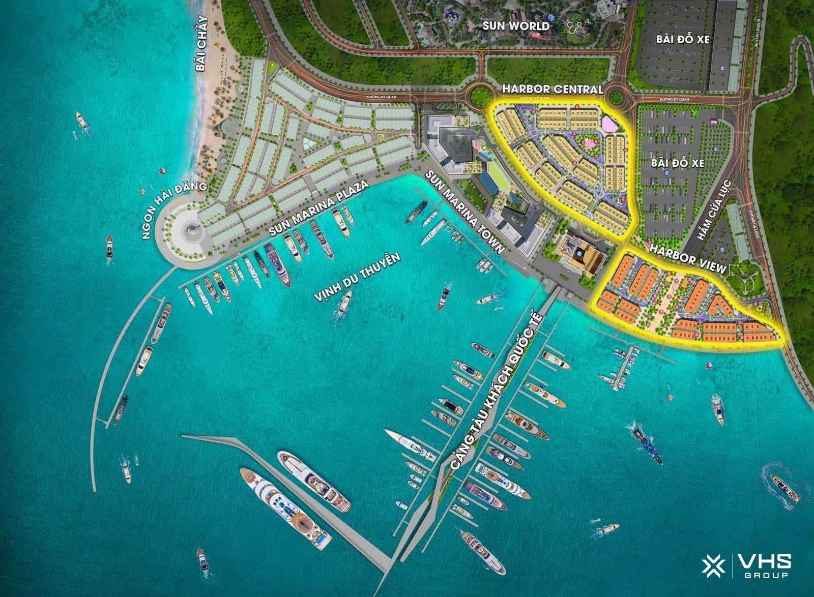 Tổ hợp nhà phố thương mại Sun Harbor Plaza bao gồm 02 phân khu với tên gọi Harbor Central và Harbor View có vị trí cụ thể như sau: