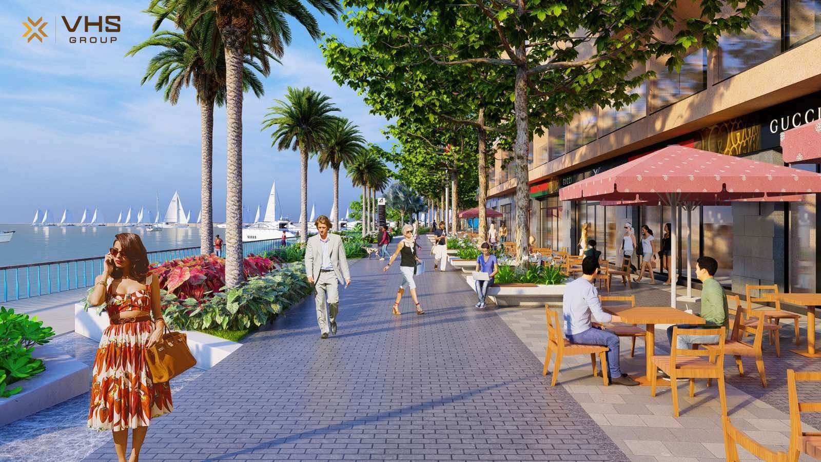 Sàn cảnh quan bám biển phân khu Harbor View trong tương lai gần nơi đây sẽ trở thành 1 tụ điểm vui chơi giải trí không chỉ cho du khách đến tham quan Vịnh Di sản mà còn cho người dân bản địa đến sử dụng dịch vụ nhà hàng, cafe ven bến cảng.